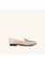 Mocasín de cuero beige o nude | - Bolso pequeño de mano o bandolera. - Gafas de sol elegantes. - Pendientes de perlas o aros finos. |